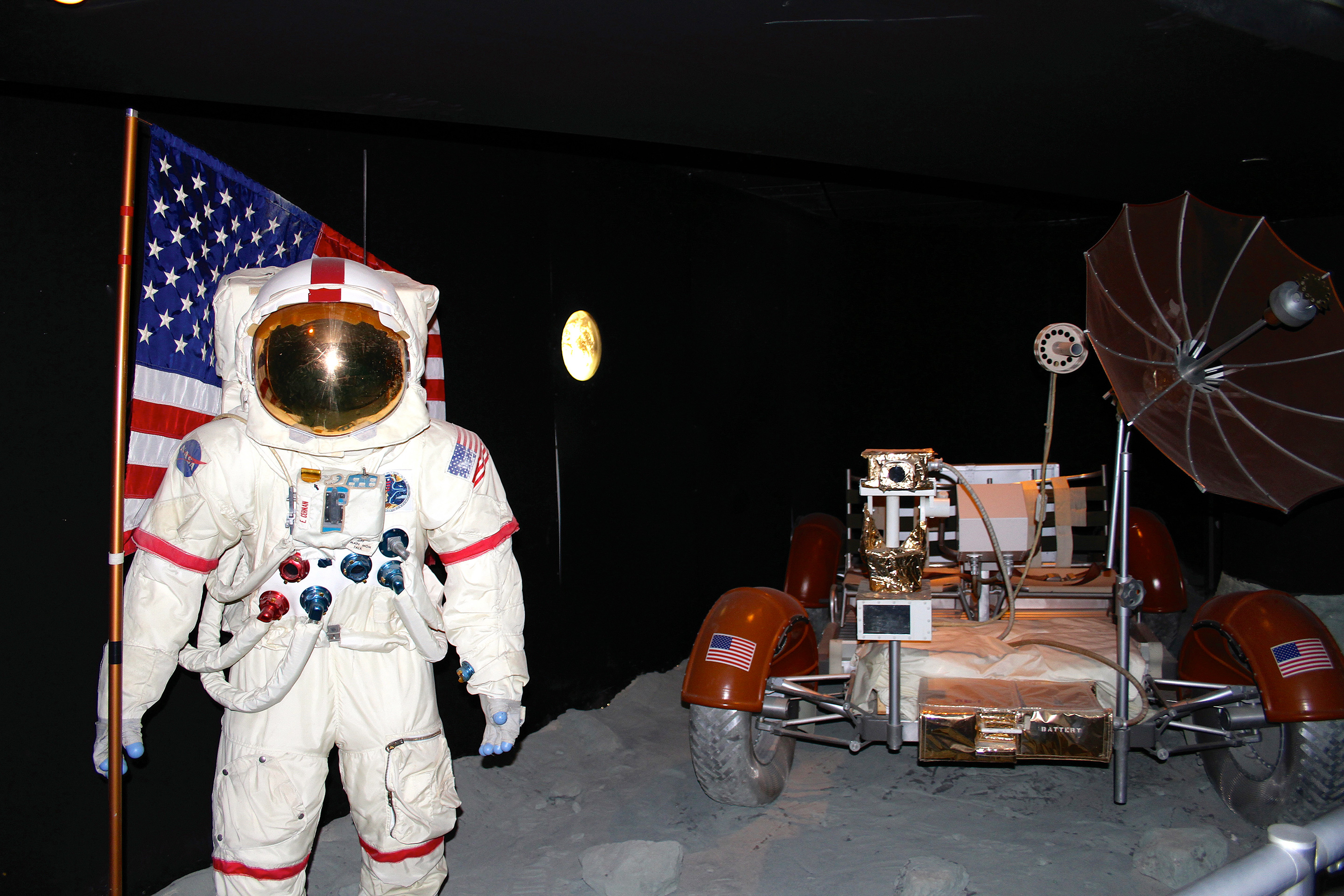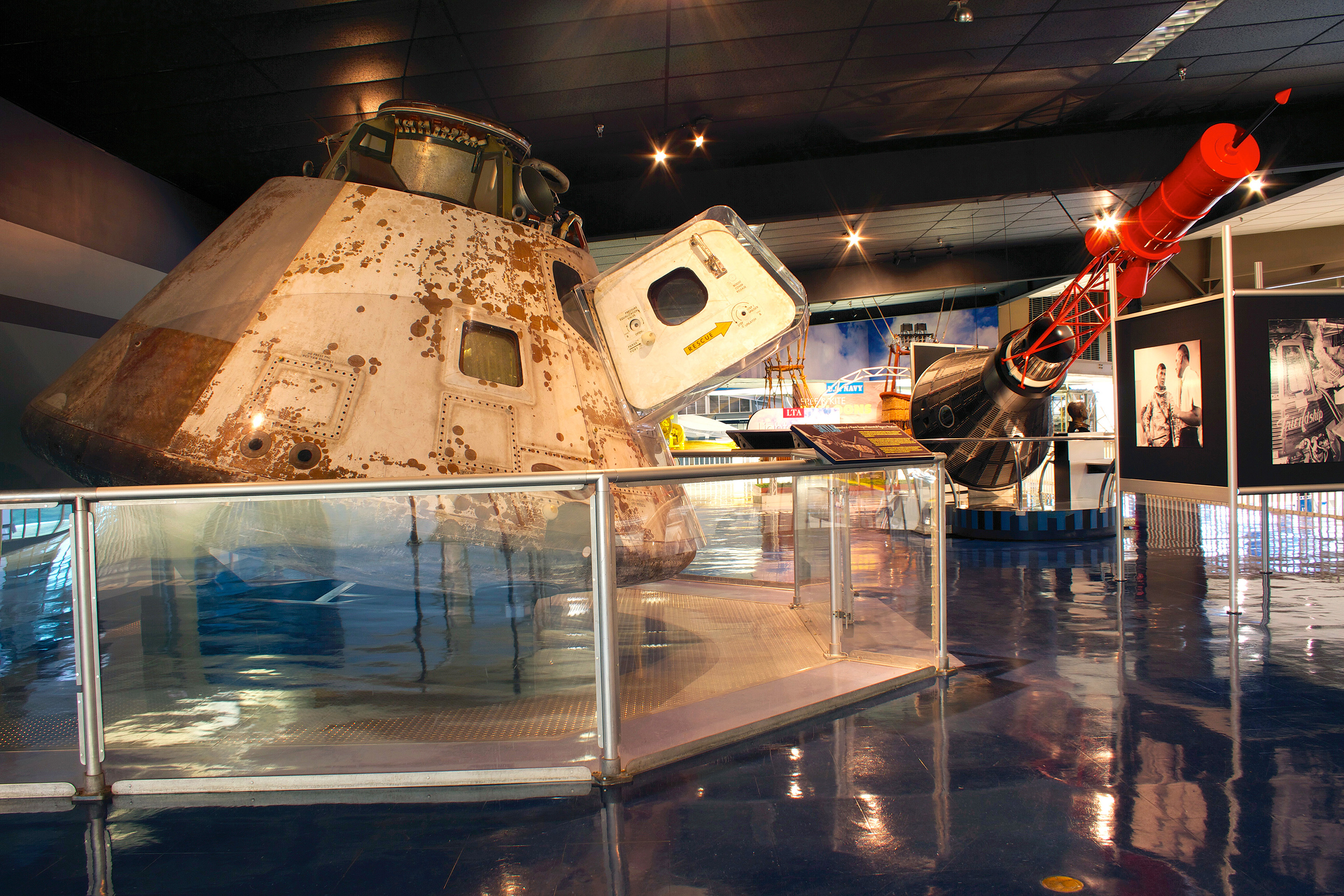 Among the space artifacts to be seen at the museum are the Apollo command module that carried an all-Navy crew to Skylab, America’s first space station, and a Moon rock from the Apollo 17 mission, as well as a variety of other items. There is a new full-size replica of the Lunar Excursion Module located in Hangar Bay One. The Navy has been so well represented in the astronaut corps that both Skylab and the International Space Station have had a ship bell placed within them.