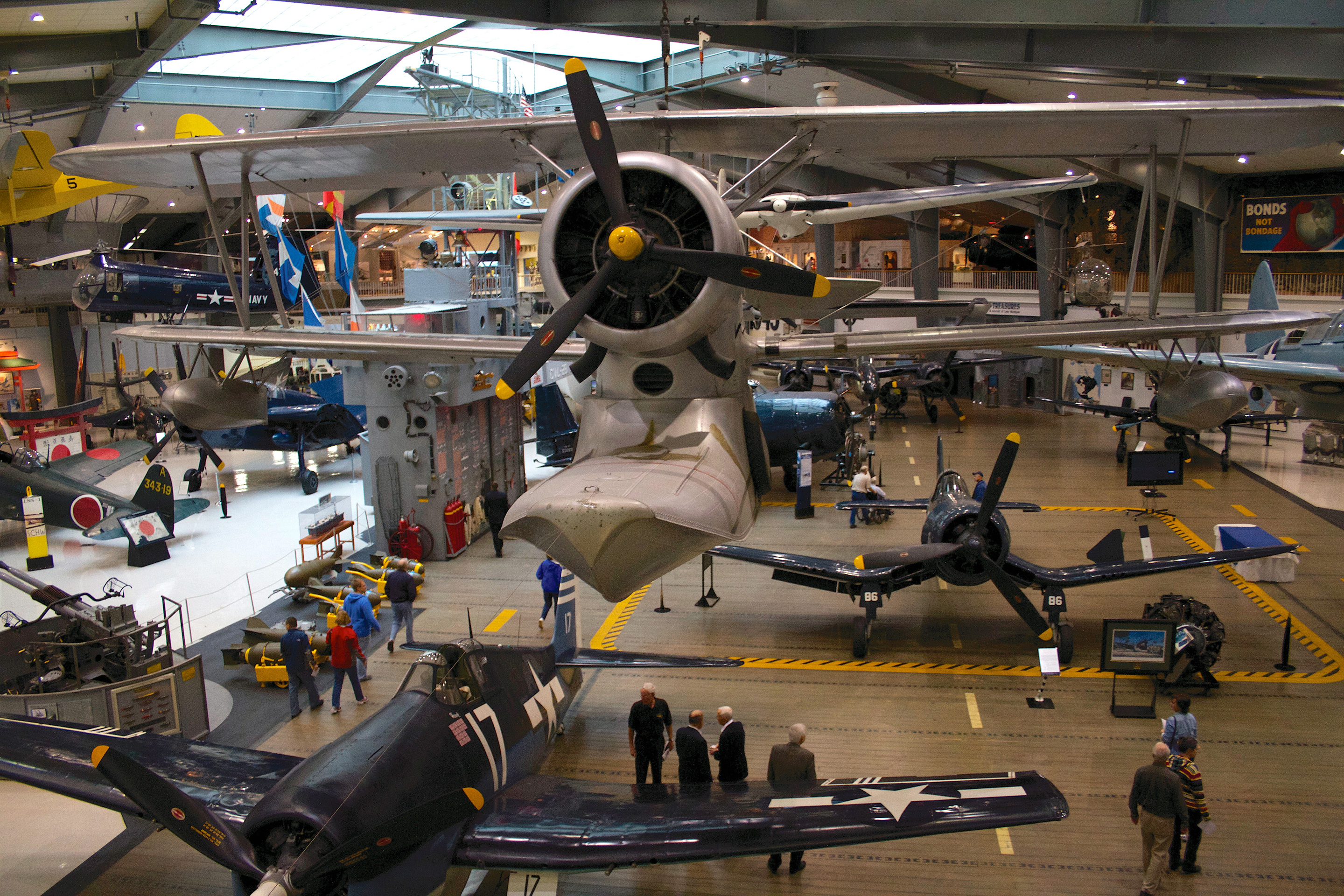 Among those on display are record-setting aircraft like the NC-4 flying boat, the first plane to fly across the Atlantic, as well as combat veterans, including the SBD Dauntless that flew at the Battle of Midway, two Vietnam MiG-killers, an A-7 Corsair II that logged missions over Iraq during Operation Desert Storm and the last F-14 Tomcat to fly a combat mission.