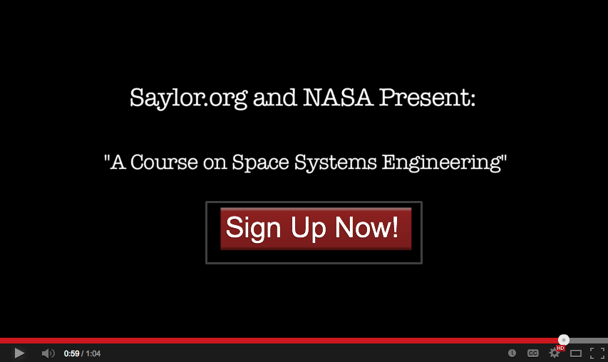 Space Systems Engineering, a new massive open online course or MOOC from NASA and the Saylor Foundation, launches on Monday, March 3, 2014. The six-week, general-audience course is available to the public at no cost and provides a unique opportunity to learn from NASA engineers. Students who participate can earn a free certificate.