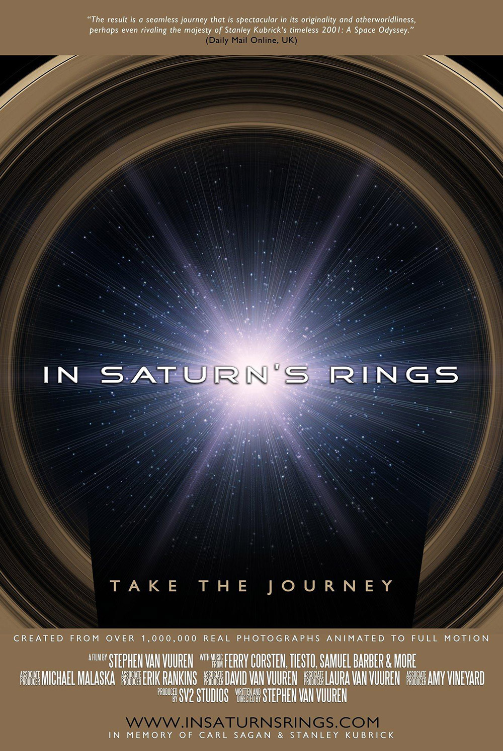 “In Saturn’s Rings” is scheduled to premier July 2014 and will be rolled out to planetariums, museums, science centers and other large screen theaters for years to come. It is dedicated to the memory of Carl Sagan and Stanley Kubrick.