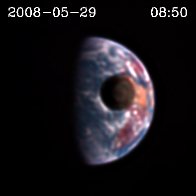 In May 2008 NASA’s Deep Impact spacecraft captured a similar view of Earth and the moon from a distance of 31 million miles away. The series of images showed the moon passing in front of our home planet when it was only partially illuminated by the Sun.