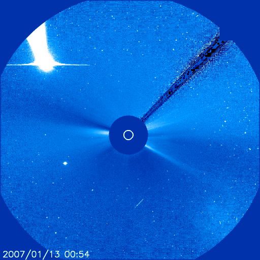 By the latter part of December Comet McNaught was near conjunction with the sun, however since it was then north of the sun observers in the northern hemisphere, particularly those in far northern latitudes who experienced a longer time between sunset and comet-set and thus a darker sky in which to observe, began to pick it up at around 4th magnitude. It brightened rapidly from that point, being close to 2nd magnitude by New Year’s Day 2007 and as bright as magnitude 0 or -1 a week later. While observers at the far northern latitudes got a moderately good show as the comet approached perihelion on January 12, those of us at more temperate latitudes had a much more difficult time seeing it, and at best could only detect it very close to the horizon in very bright twilight.