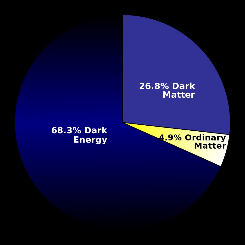 According to researchers’ models, dark energy must be the most common form of energy in the universe, making up about 68% of the total energy in the universe. The energy from everyday matter, which makes up the Earth, the Sun and everything we can see, accounts for only about 5% of all energy.