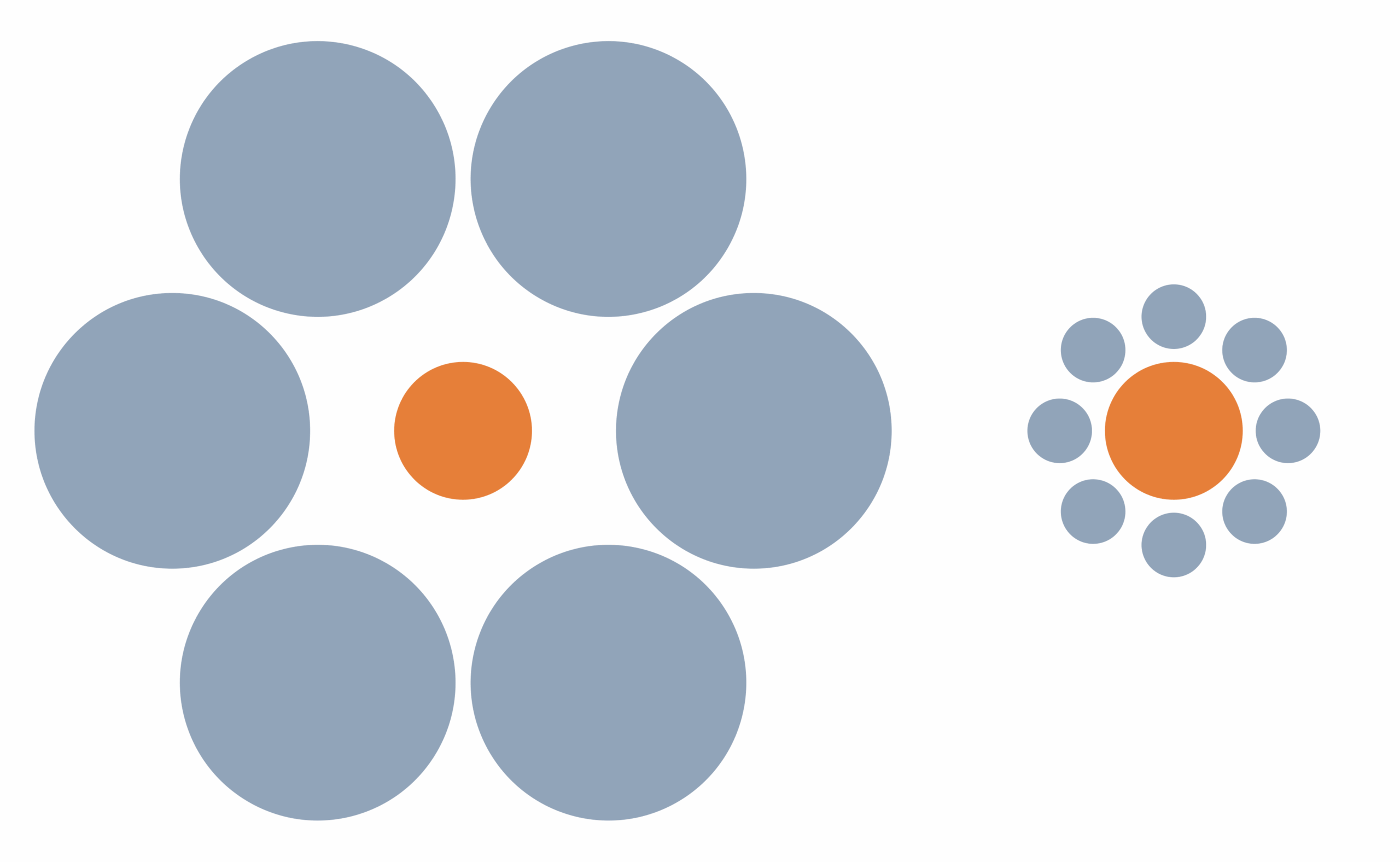 The two orange circles in the center of the gray circles are the same size, but they look different because of the different sizes of the circles surrounding them. Credit: Phrood/Wikimedia Commons