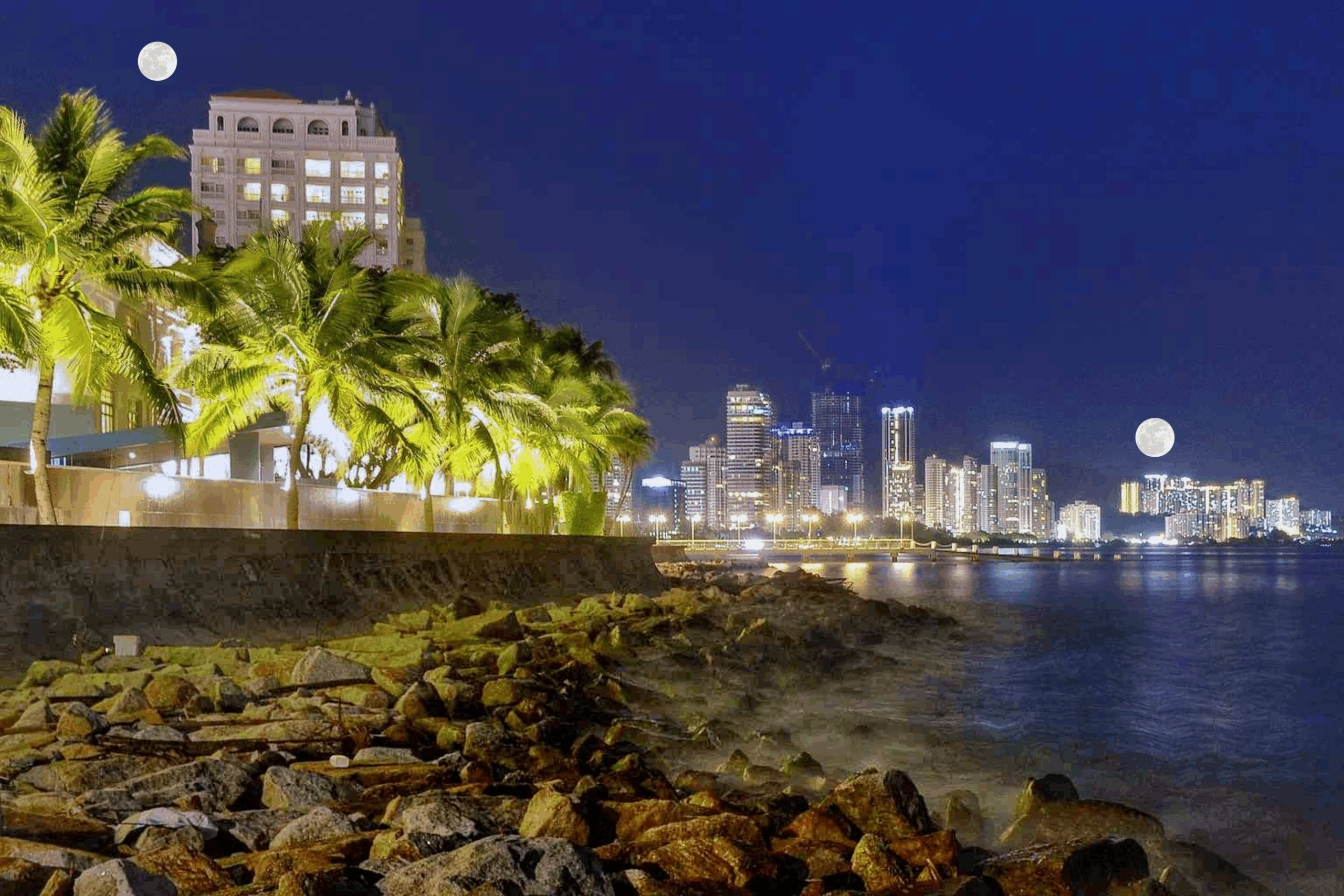 The two Moons in this edited image are the same size, but the one near the horizon on the right side looks bigger because of the Moon illusion. Credit: Heeheemalu/Wikimedia Commons